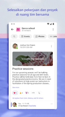 Maksimalkan produktivitas bersama dengan fungsionalitas canggih di Microsoft Teams. Bagikan momen penting dan ide-ide baru dengan mudah melalui foto dan video langsung dalam obrolan. Dengan akses terintegrasi ke penyimpanan cloud, dokumen dan file Anda selalu tersedia, memungkinkan kolaborasi tanpa hambatan di mana pun Anda berada. Atur semua konten bersama – mulai dari acara, tautan, hingga file – dalam komunitas khusus agar tidak perlu lagi mencari-cari. Manfaatkan sepenuhnya setiap pertemuan dengan fitur berbagi layar yang intuitif, papan tulis interaktif, atau sesi kelompok untuk diskusi yang lebih mendalam, memastikan semua rencana dan proyek berjalan lancar. Kelola tugas dengan daftar tugas terperinci, tetapkan tenggat waktu, dan pantau kemajuan bersama tim.