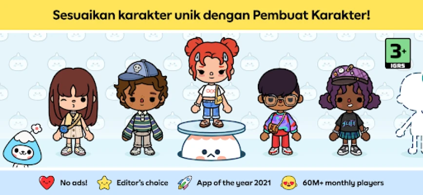 Toca Boca World mengundangmu untuk menyelami alam semesta tanpa batas, di mana imajinasi adalah satu-satunya batasan. Di sini, setiap cerita adalah milikmu untuk dibangun, dan setiap karakter adalah ciptaan unikmu. Bebaskan sang narator dalam dirimu, wujudkan impian untuk menjadi apa pun dari seorang guru yang berdedikasi, dokter hewan yang peduli, hingga seorang *influencer* trendi. Rancanglah setiap detail kehidupan virtualmu, mulai dari menciptakan sahabat dengan penyesuaian gaya rambut, ekspresi wajah, dan aksesori, hingga mendesain hunian impian. Apakah itu rumah keluarga yang nyaman, supermarket yang ramai, atau karavan petualangan, gunakan alat Desainer Rumah intuitif untuk menghidupkan visi arsitekturmu dengan perabot dan warna favorit.