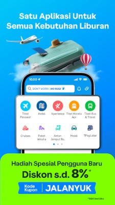Wujudkan setiap impian perjalanan Anda, mulai dari petualangan spontan hingga liburan terencana ke penjuru dunia. Traveloka adalah pendamping perjalanan lengkap Anda, menyajikan kemudahan menemukan dan memesan tiket pesawat, akomodasi impian, hingga ragam kegiatan seru yang akan memperkaya pengalaman Anda di berbagai destinasi populer. Nikmati berbagai penawaran istimewa yang senantiasa hadir, memastikan setiap perjalanan Anda menjadi lebih hemat dan tak terlupakan.