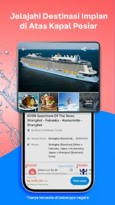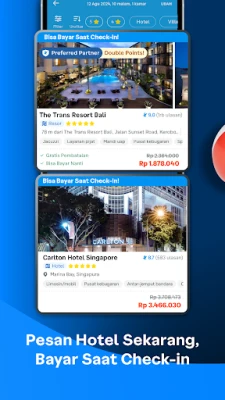 Temukan tempat menginap ideal yang sesuai gaya perjalanan Anda, dari hotel ekonomis, vila mewah, hingga apartemen nyaman di lebih dari 100.000 properti di seluruh dunia. Manfaatkan promo harian dan opsi 'Bayar Nanti' dengan TPayLater untuk fleksibilitas lebih. Selanjutnya, selami dunia Traveloka Xperience untuk merancang itinerary impian Anda. Pesan tiket atraksi populer seperti Disneyland dan Universal Studios, atau temukan aktivitas unik di sekitar Anda dengan fleksibilitas perubahan tanggal dan kemudahan refund. Kini, pengalaman liburan semakin lengkap dengan fitur Cruise untuk pelayaran mewah dan Paket Wisata yang menggabungkan pesawat, hotel, dan Xperience dalam satu pemesanan praktis. Tak perlu khawatir perubahan rencana; Traveloka menyediakan fitur refund dan reschedule yang fleksibel, bahkan perlindungan visa. Dukungan pelanggan 24/7 dalam berbagai bahasa, termasuk IVAN asisten virtual, selalu siap membantu Anda kapan pun dibutuhkan.